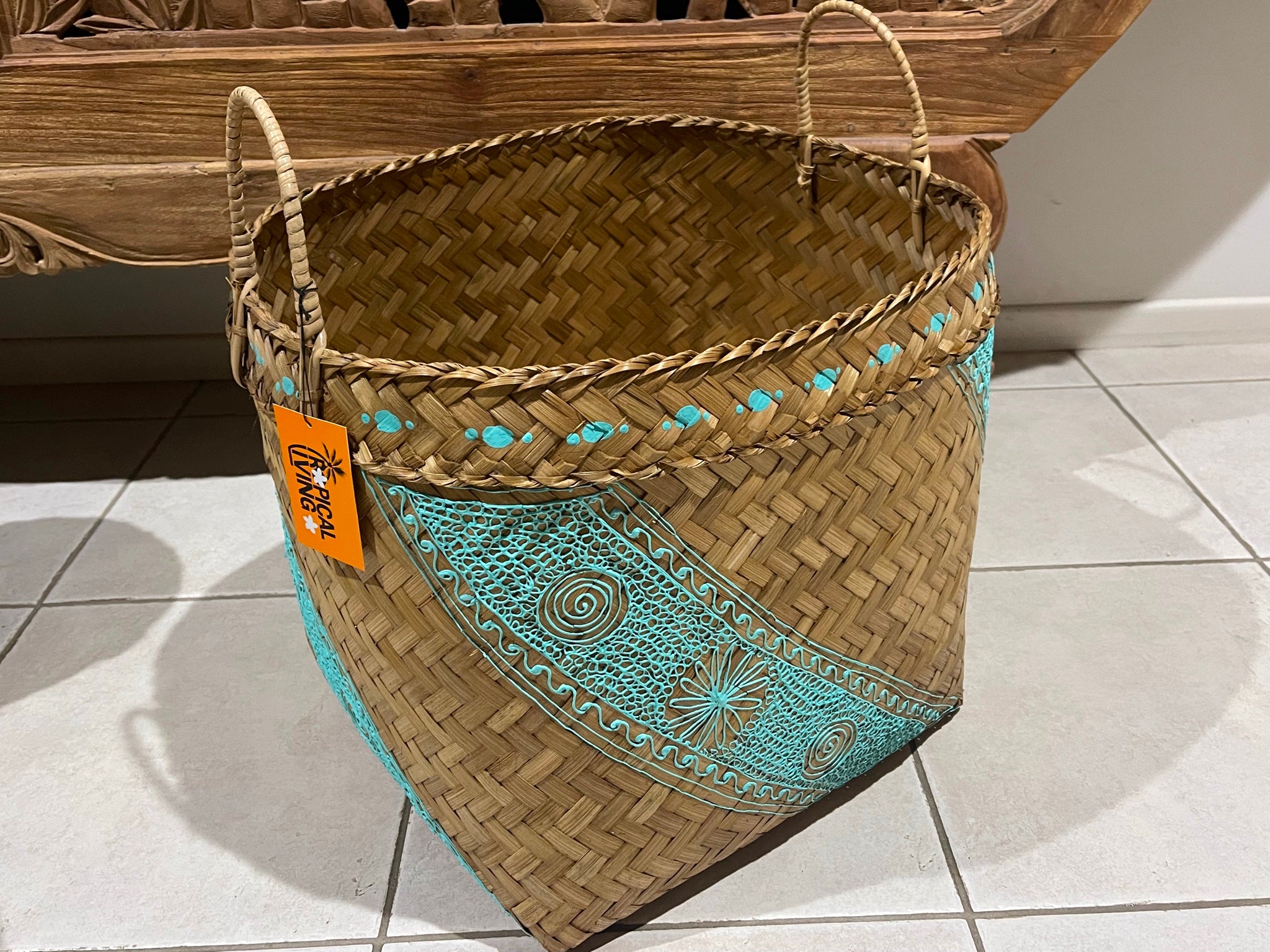 This beautifully hand woven bamboo basket with hand painted mandala design is just gorgeous as you can see in the photos and will add Tropical Charm to your home.