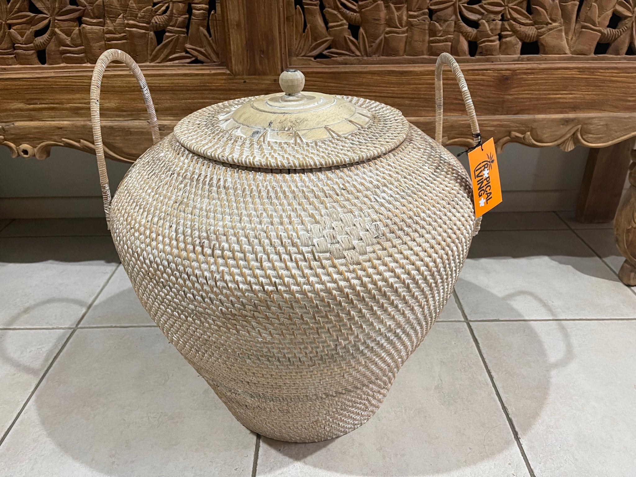 We also have this basket available in white wash finish under seperate listings in our store.