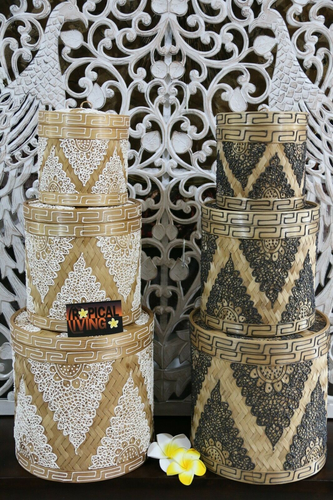NEW Balinese Hand Woven Natural Bamboo Basket with Lid - Mandala Design xx