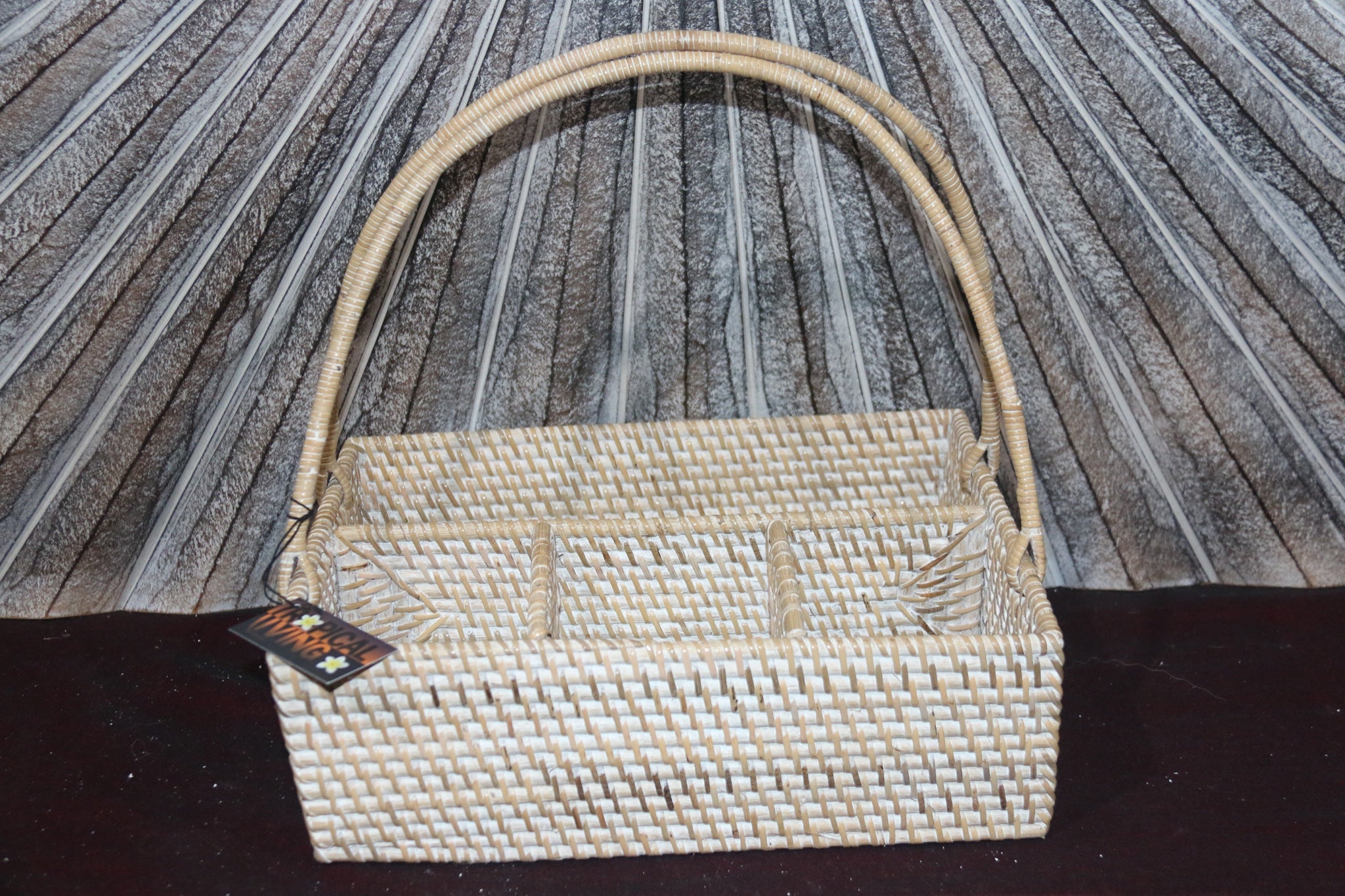 These beautifully hand crafted / woven rattan 4 compartment baskets have so many uses!! Sky is the limit with these but a few idea's are: Cutlery, Condiments, Utensils, Make-Up, Make-Up Brushes, Art Supplies.... it goes on and on!!