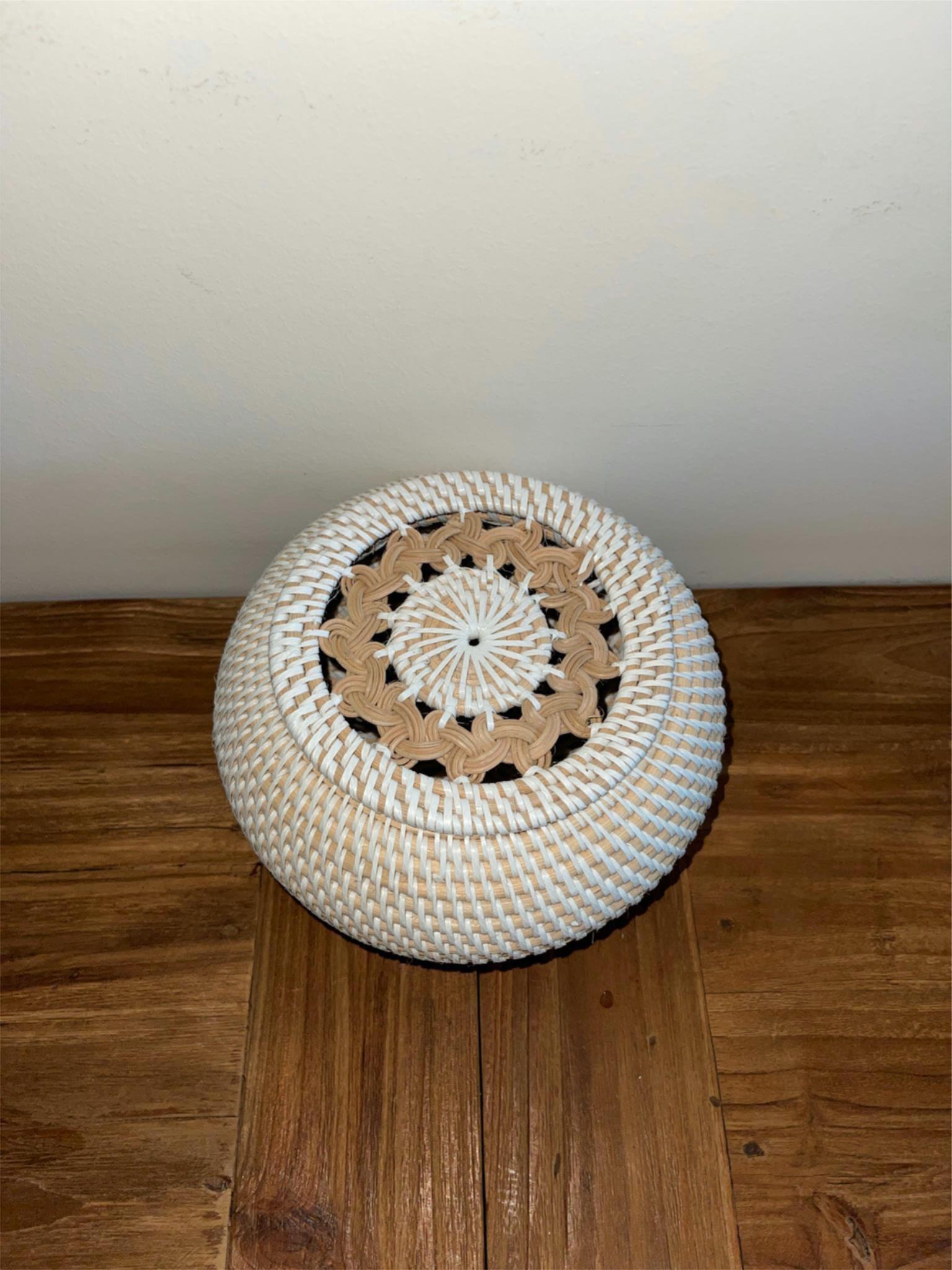 The use for this beautiful handmade woven basket is endless, so many things you can use it for or simply use as a decorative piece with it's stunning feature lid.