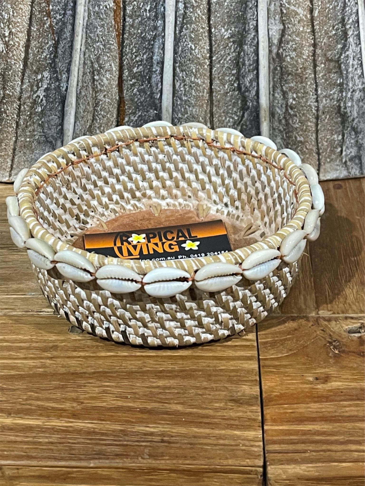 These beautifully hand woven rattan with shell trim baskets are just as gorgeous as you can see in the photos and will add Tropical Charm to your home.