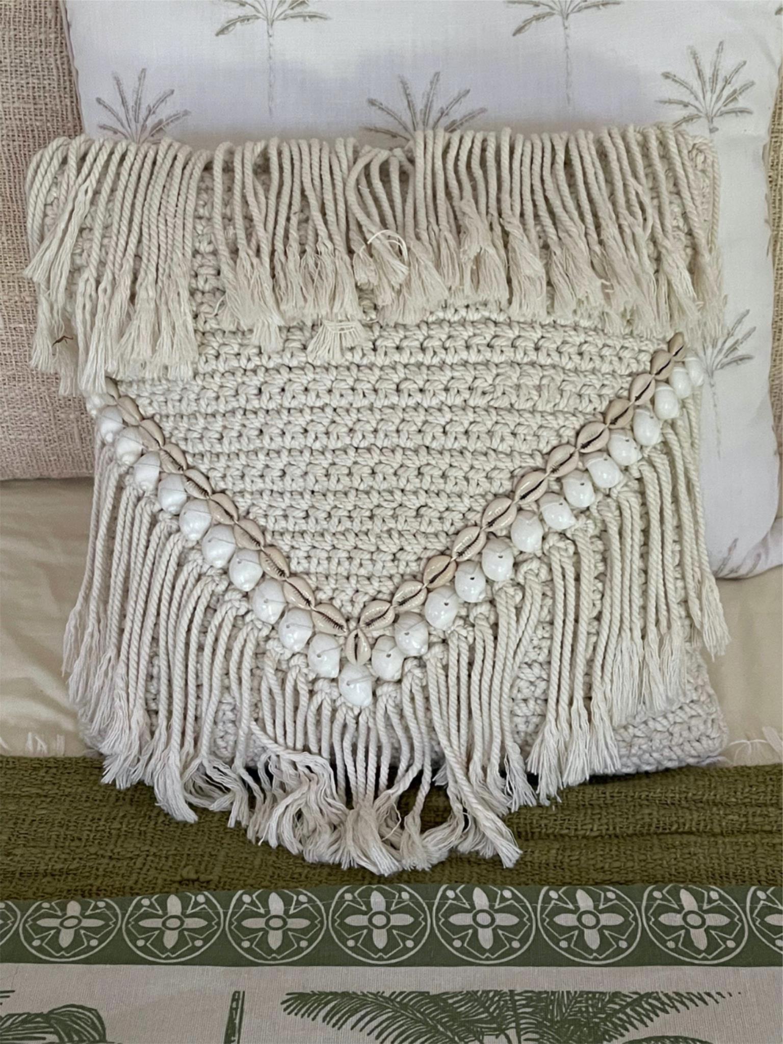 Beautifully hand crochet with shell trim these cushions will add coastal, BOHO or just a simple classy touch to your home. There is a lot of work in making this stunning cushion cover.