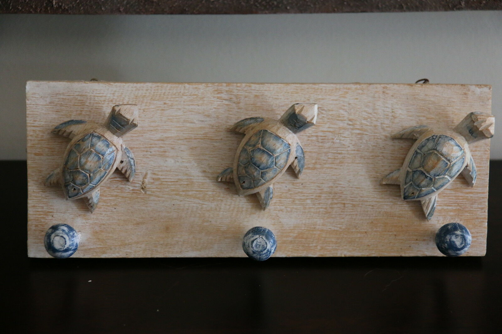 NEW Balinese Handmade Wall Hung 3 Peg Turtle Hanger - Balinese Nautical Range