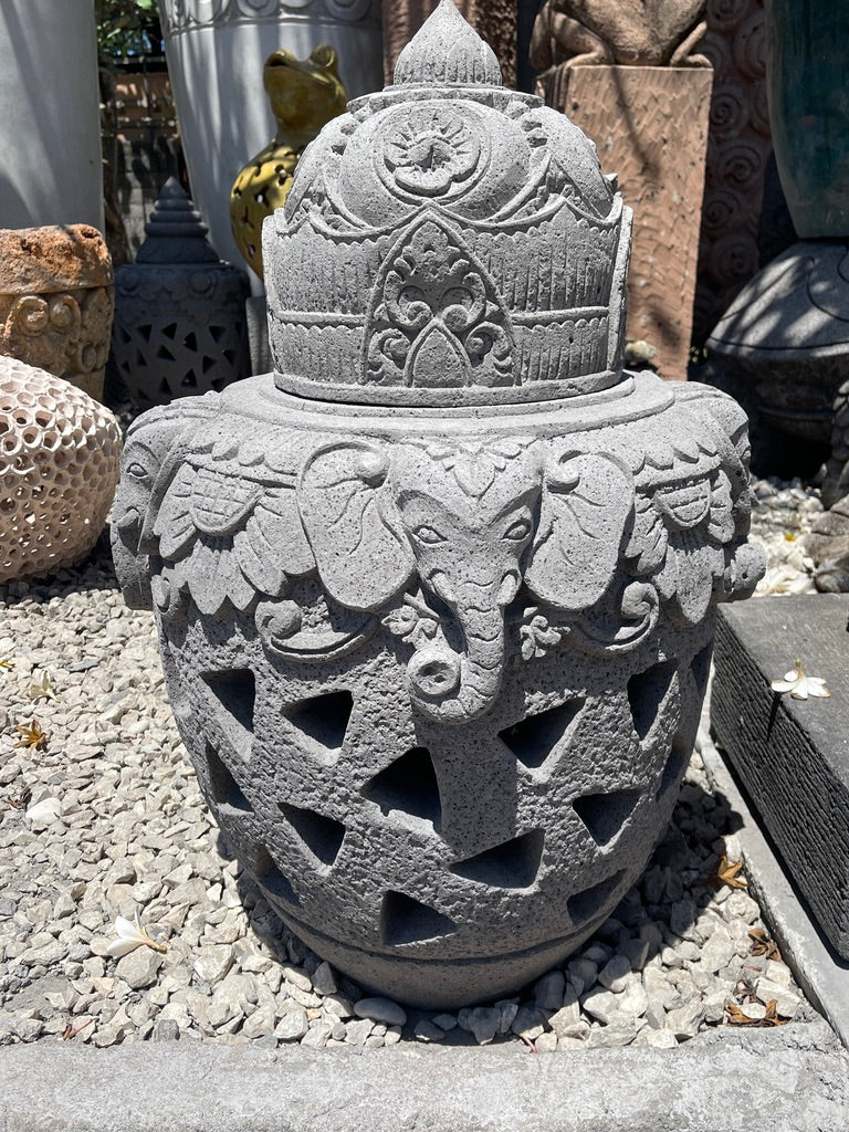 These beautifully hand carved Balinese Lanterns featuring an elephant head are the amazing works of art by Indonesian Master Carvers.