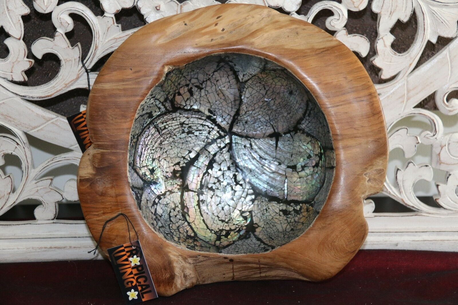 NEW Balinese Quality TEAK Wood & Shell Feature Bowl - Bali handcrafted bowl