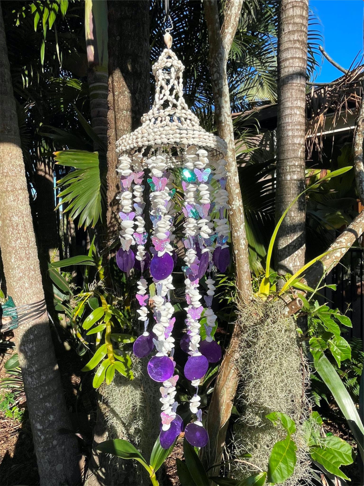 These shell wind chimes with butterfly trim are absolutely lovely as you can see in the photo.