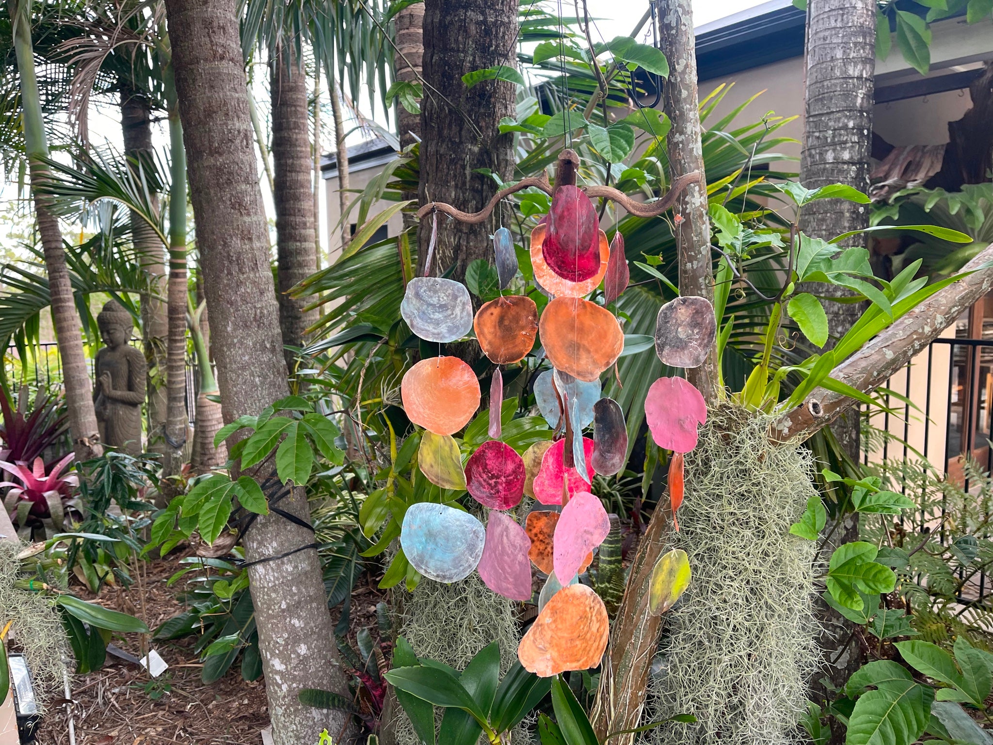 Measurements are approximately 25cm x 80cm long from the very top where it hangs to the bottom shell disc