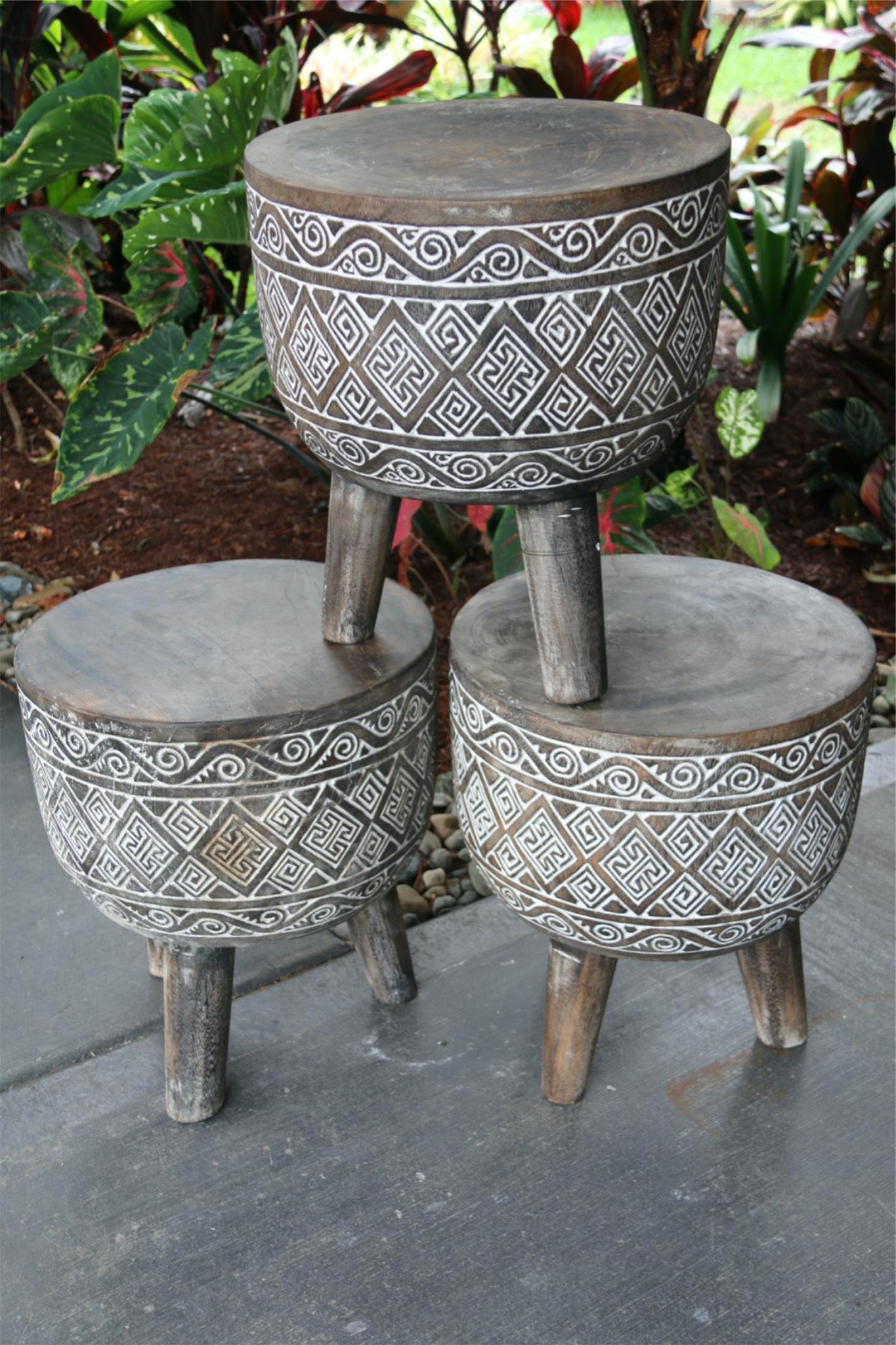 These stunning hand carved and crafted from quality SUAR WOOD Primitive style drum stools are just gorgeous as can be seen in the photos...