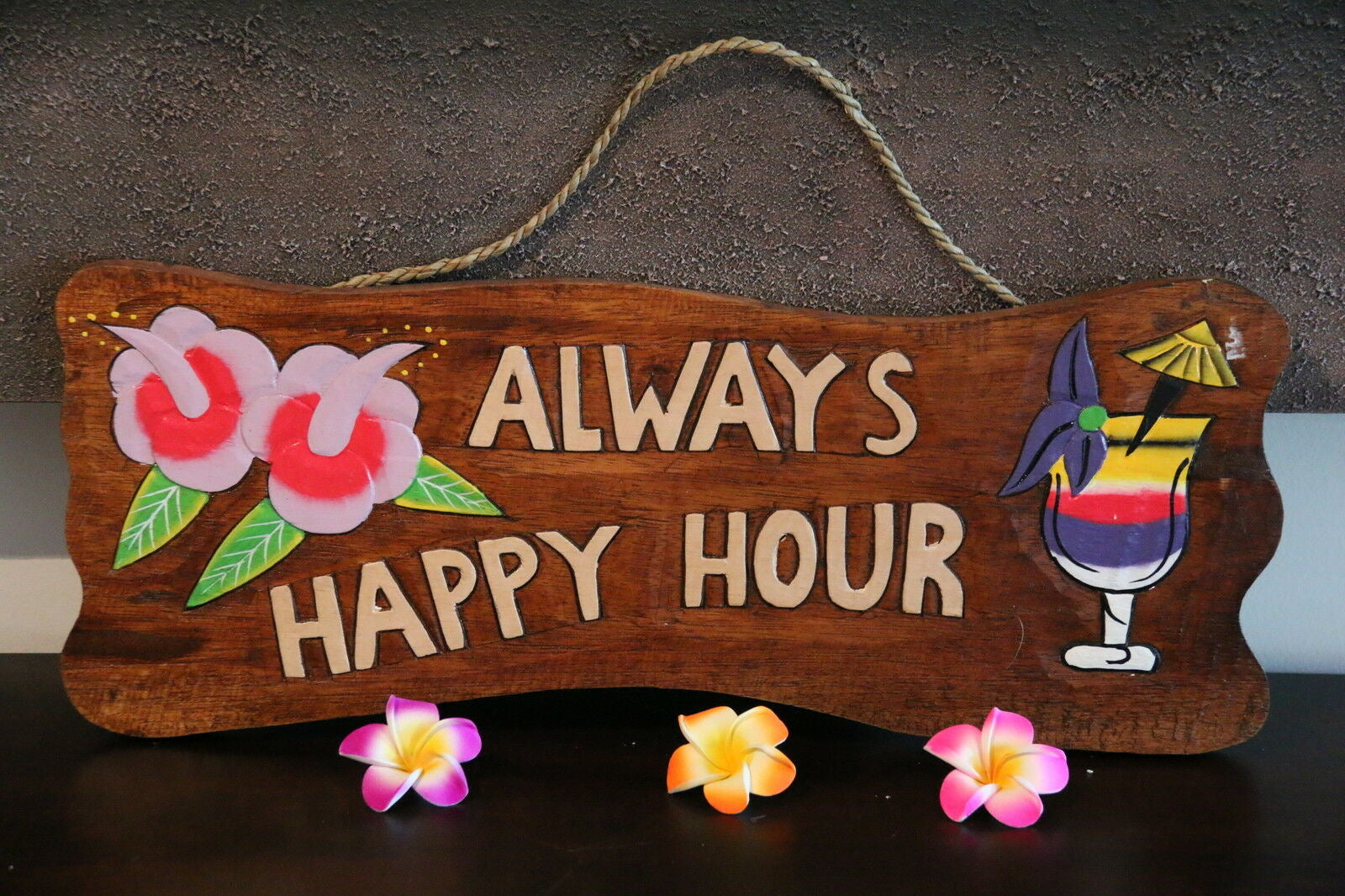 NEW Hand Crafted & Carved Tiki Bar ALWAYS HAPPY HOUR Sign - Bali Bar Sign