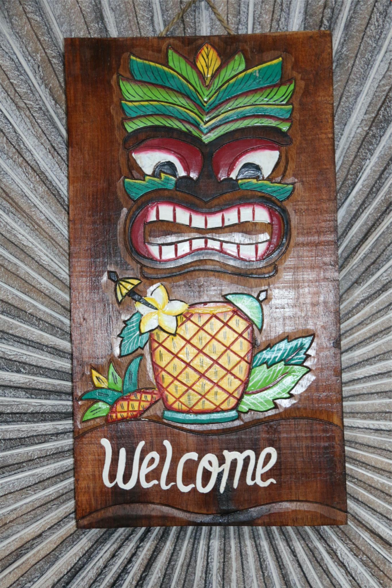 This hand crafted & carved WELCOME sign will add fun and charm to your Tiki Bar or entertaining area's