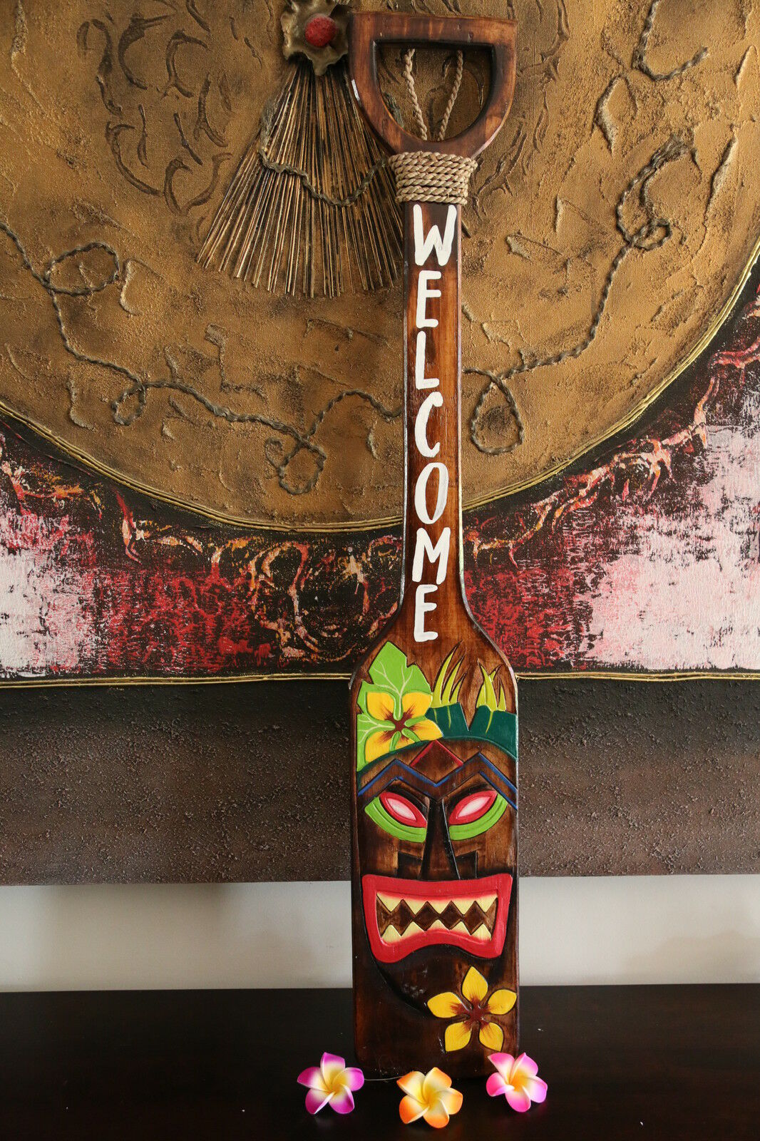 This hand crafted & carved WELCOME Paddle sign will add fun and charm to your Tiki Bar or entertaining area's