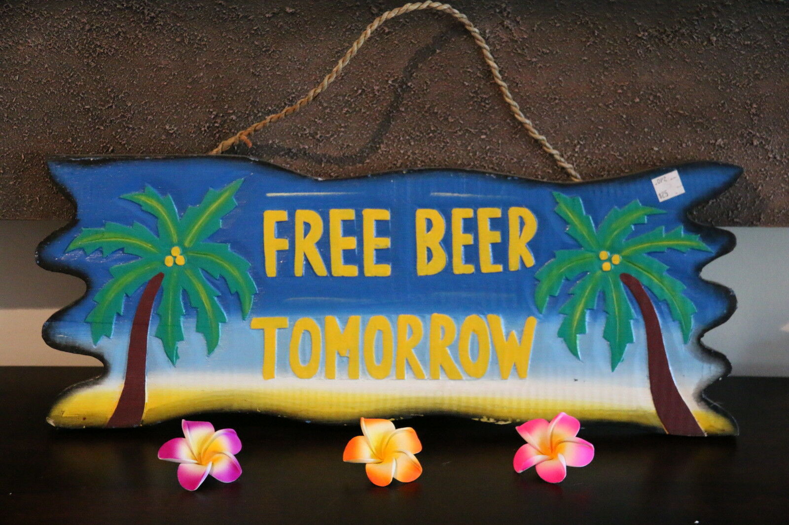 NEW Hand Crafted Tiki Bar Free Beer Tomorrow Sign - Bali Bar Sign - Made in Bali