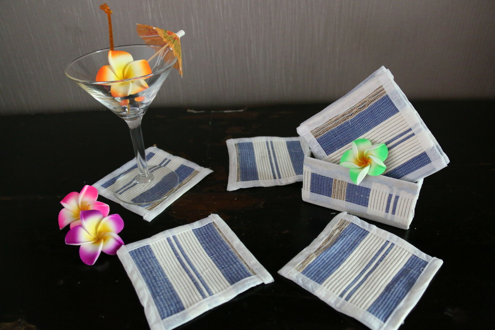 NEW Hand Made Balinese Set 10 Coasters with Holder - MANY COLOURS AVAILABLE