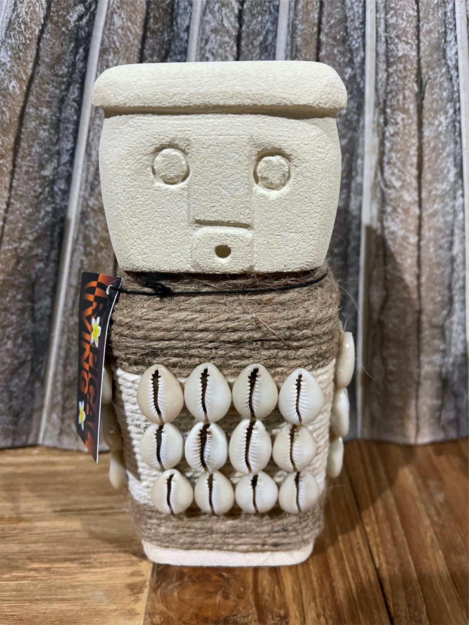 NEW Indonesian Hand Carved Primitive Stone Sumba Statue with shell and string trim - TIMOR ART