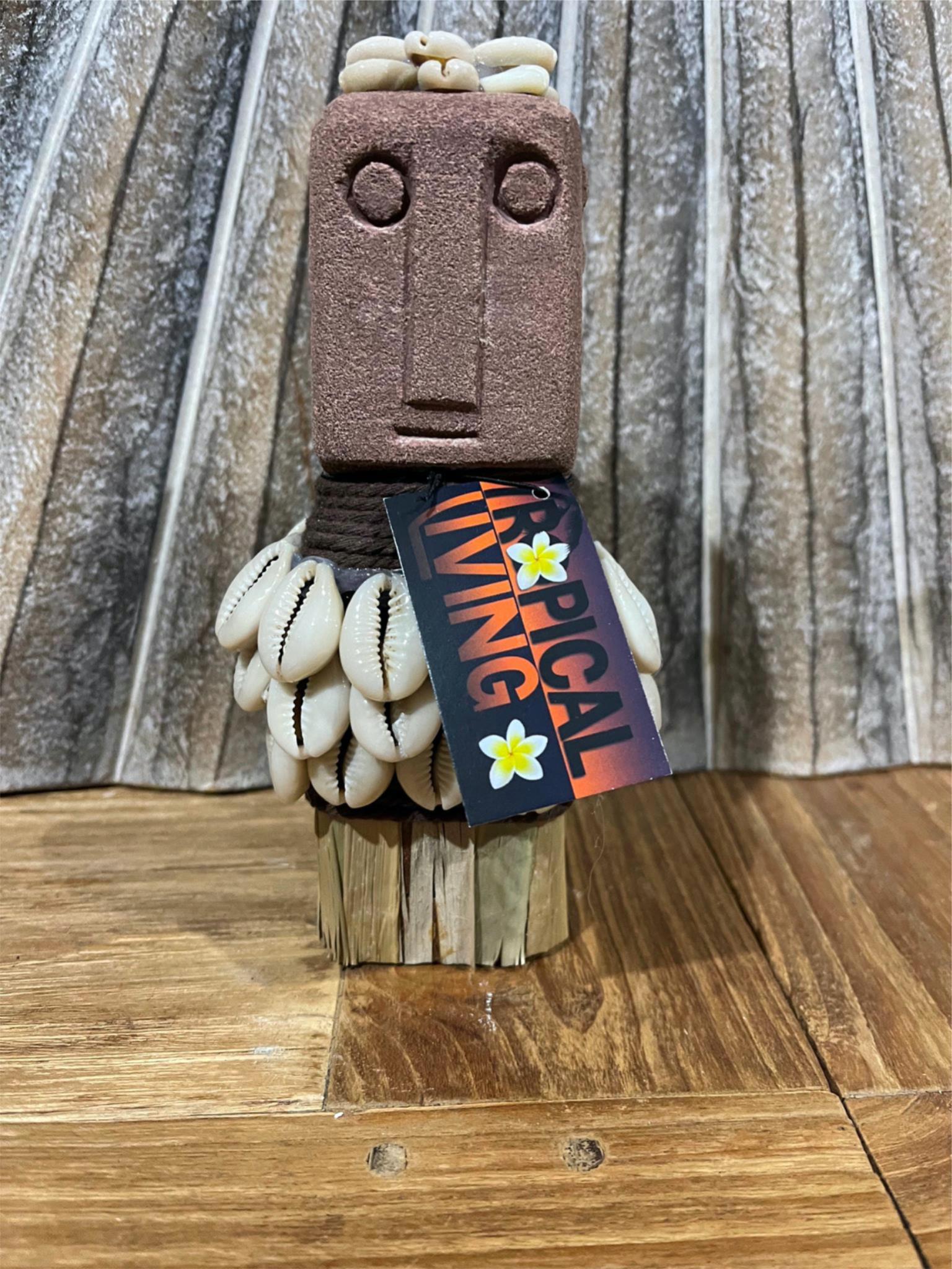 NEW Indonesian Hand Carved Primitive Stone Sumba Statue with shell, seagrass and string trim - TIMOR ART
