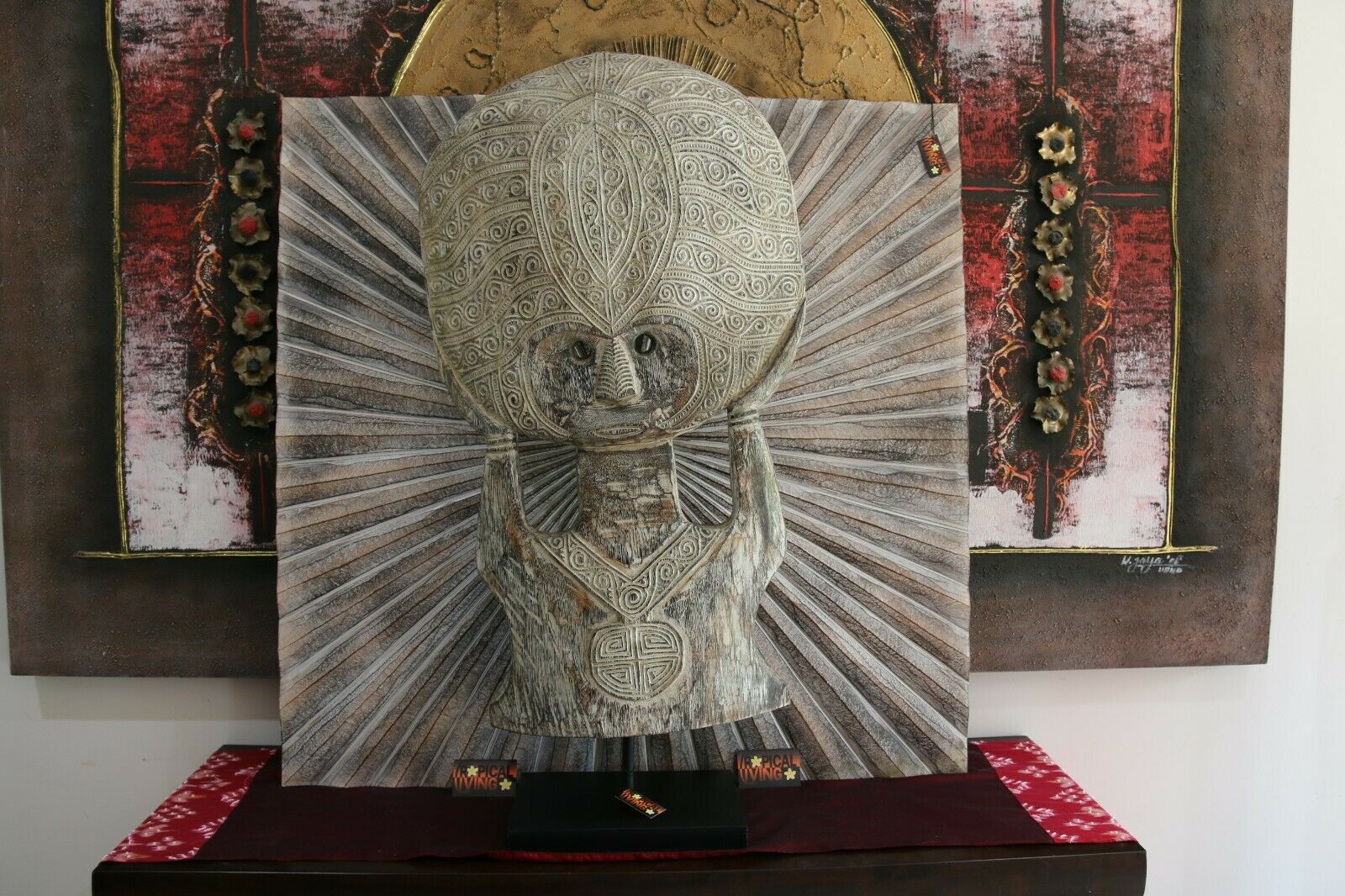 NEW Indonesian Hand Carved Primitive Wooden Mask Sculpture on Stand - TIMOR ART