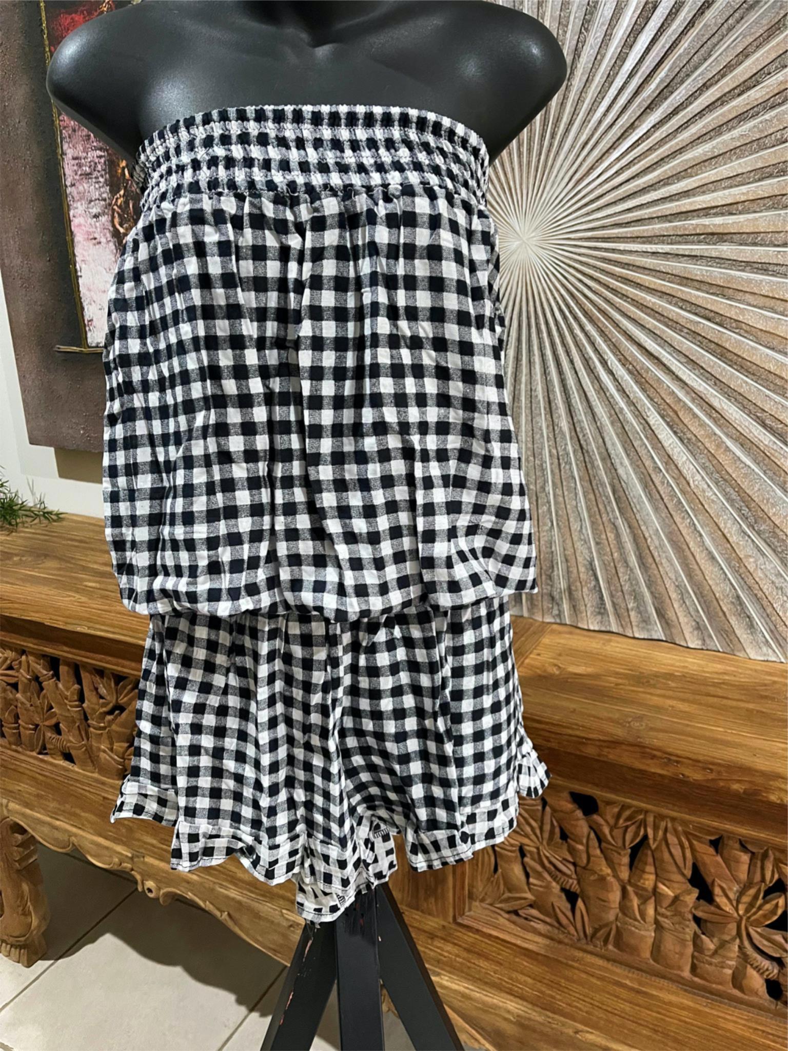 Measurements are approximately: Elastic shirred top strapless band stretched to maximum 50cm