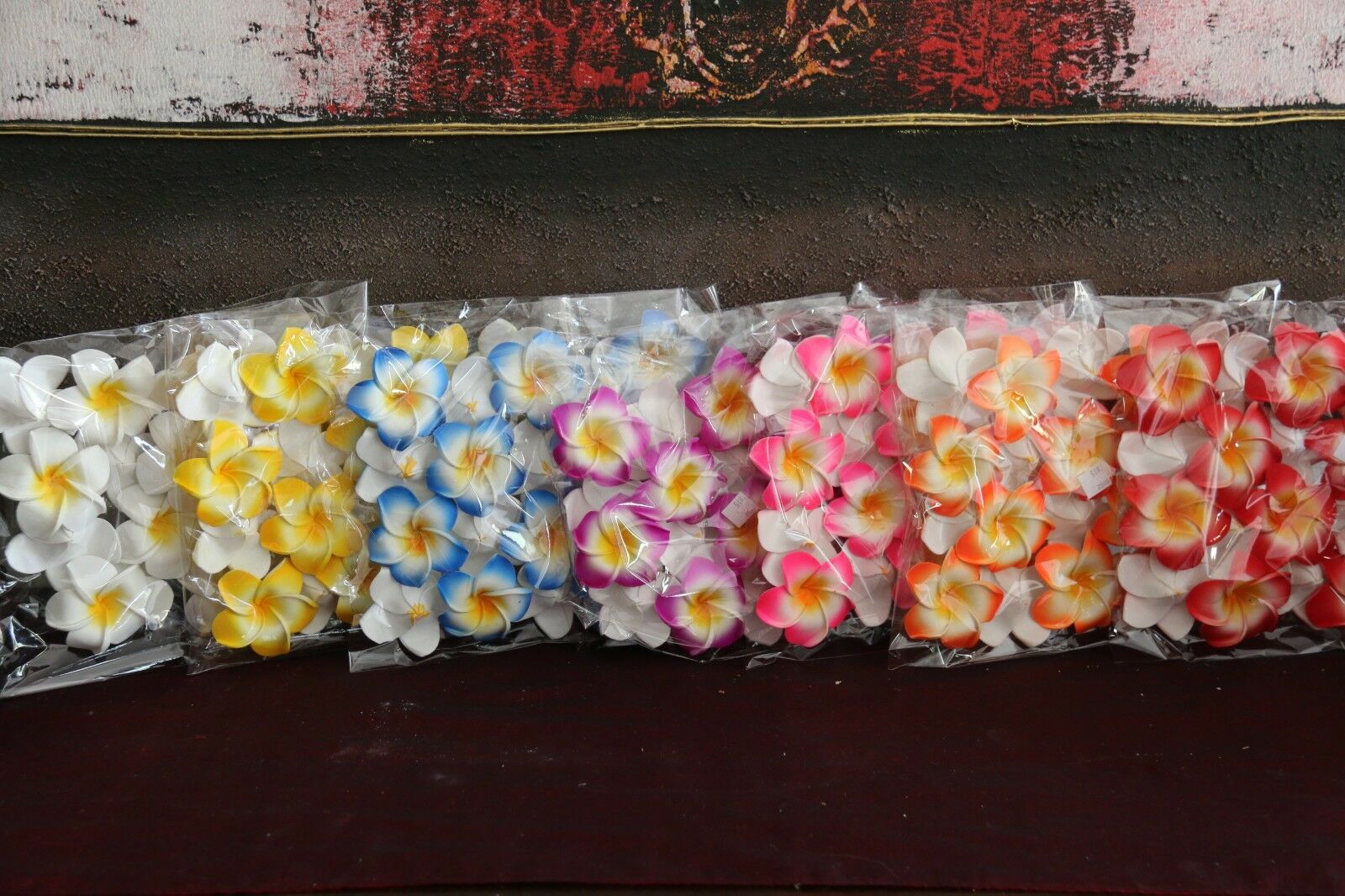 Pack consists of 20 medium frangipani's that measure approximately 5cm diameter...