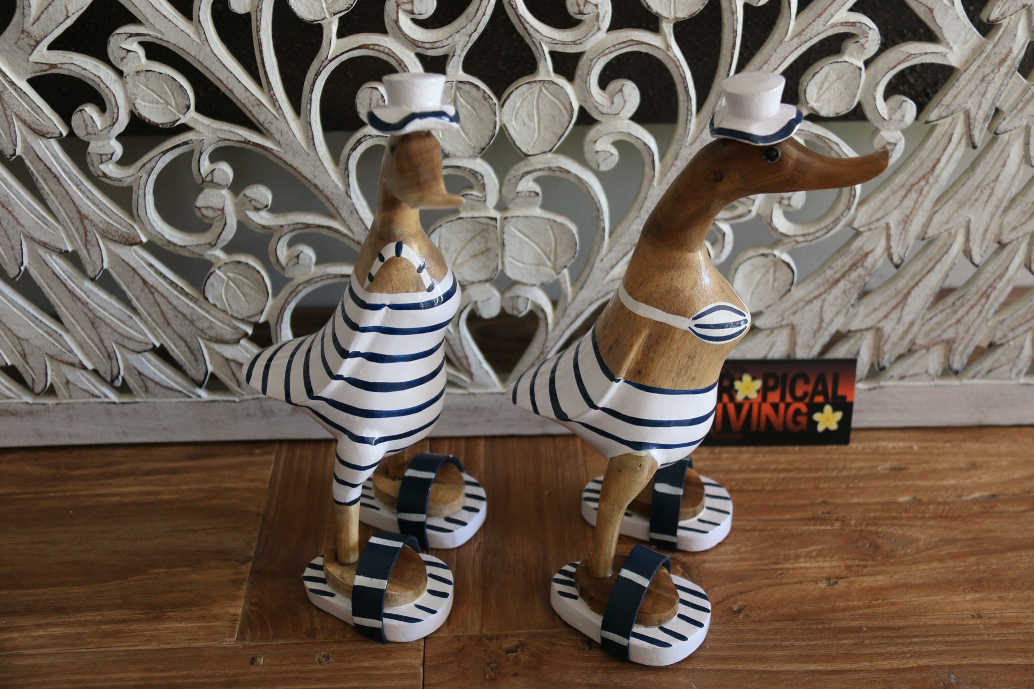 SET OF 2 Hand Crafted Balinese Striped Male & Female Swimsuit Ducks - Cutest things ever!!